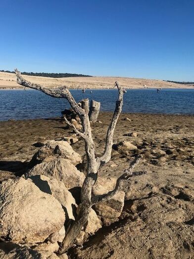 Meses han pasado desde que la ribera más cercana a la ermita de la Santa Cruz luce seca; una situación que se ha acentuado con el 2019 y ha dado paso a un nuevo escenario: el de los restos de un pueblo que, hace ya más de medio siglo, desapareció, al menos físicamente, para siempre. A la vista quedan los huecos en los que, años ha, las vides agarraban sobre el suelo granítico -tan característico de la zona- y en el que algunas cepas continúan resistiendo al paso del tiempo.