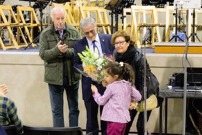 Seguidamente, D. Vicente del Bosque agradeció la presencia de todos los que allí se encontraban y expresó su satisfacción porque hubieran pensado en él para este acto tan entrañable, inaugurando oficialmente el Auditorio Leticia Rosino.