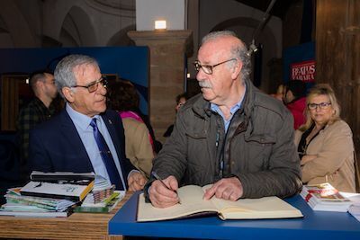 A las diez y media el alcalde de la localidad D. José Ramos San Primitivo esperaba al ex seleccionador nacional de fútbol, el mismo que nos condujo a la memorable final de Sudáfrica y consiguió no solo que pudiéramos soñar de nuevo sino que gracias a su trabajo volvimos a sentir la satisfacción y el orgullo de unos colores con aquel triunfo que se recordará para siempre. El anfitrión quiso enseñarle uno de los orgullos de Tábara, el Scriptorium, en el que hace once siglos, también una selección de artistas incomparables (Magius, Emeterius, Senior, Ende,…) consiguieron crear algunas de las más hermosas obras que el arte medieval nos ha legado.