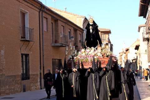Poco después, y al ritmo del himno "Soledad, madre de Dios", interpretado por la Asociación Musical La Mayor, bajo la dirección de su compositor, José Manuel Chillón, la bellísima y dulce imagen de la Virgen de la Soledad, portada a hombros de sus cargadores, salía de Santa Catalina para comenzar su lento paso por las principales calles toresanas. Como ya se ha convertido en una significativa costumbre, como uno de los símbolos de la unión y colaboración entre cofradías de Toro, en la iglesia del Santo Sepulcro la esperaba la imagen velada de Jesús Yacente para acompañar el paso doloroso de su Madre con su presencia.