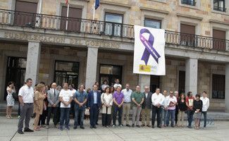 Los políticos zamoranos se concentran y guardan cinco minutos de silencio, en la plaza de la Constitución, como protesta por el asesinato de una mujer por su pareja, en Sala de los Infantes, provincia de Burgos
