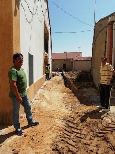 El alcalde del Perdigón, Ángel Calleja, y el concejal de Obras y Mantenimiento del municipio, Graciano Vicente, constatan sobre el terreno el avance de los trabajos, que se prolongará durante las próximas dos semanas.