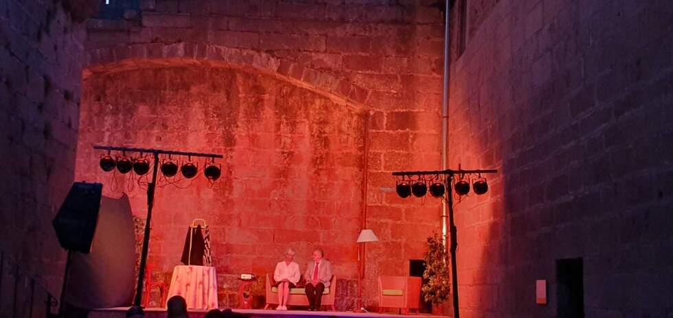 La plaza del castillo, a los pies de la torre del Macho, se vio abarrotada de un público que disfrutó con la representación de una obra característica del popular autor del siglo XX en la que, con una comicidad del agrado de los asistentes, se hace crítica certera de las relaciones familiares.