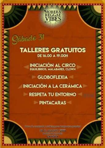 Respecto al reggae, el Festival Morera Reggae Vibes tendrá lugar un año más el viernes y el sábado en la que constituye una cita ya en el calendario para los amantes de este tipo de música. Además, el programa de fiestas contará con talleres para toda la familia y para niños especialmente, en los que se abordarán asuntos como el arte reciclado y el conocimiento del entorno, así como otros talleres de manualidades, iniciación al circo, a la cerámica..., a lo que se sumarán pruebas deportivas como el cross popular y una marcha cicloturista.