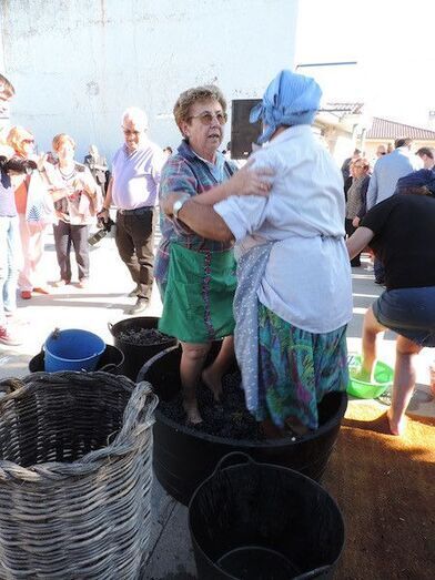 La jornada comenzó con la tradicional pisada de uvas, un emotivo acto donde mujeres de Cibanal dieron paso a la tradición, procediendo a la pisada de uvas al son de la música de “Manteos y Monteras”.