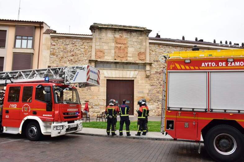 Aproximadamente a las 13:45 horas, se han personado en la Alhóndiga del Pan, en calle Santa Ana de Zamora, dos unidades de Bomberos, alertados por funcionarios de las instalaciones, que alegaban “un fuerte olor a quemado.”
