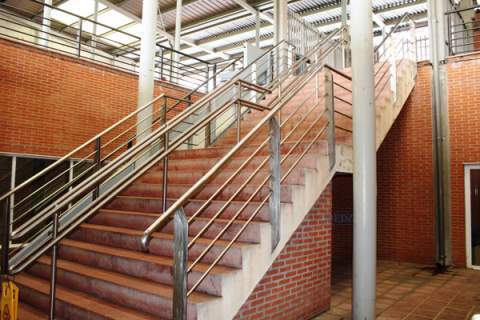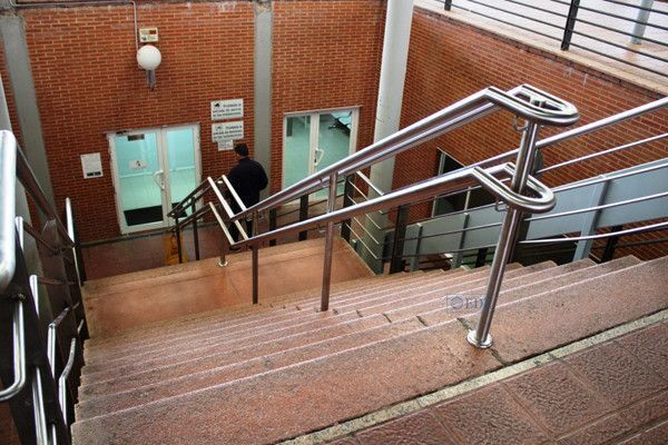 La nueva escalera mantendrá la misma anchura de que la actual pero se realizará en dos tramos y en ángulo recto con meseta intermedia. El arranque de la misma se realizará por un lateral de la entrada para aprovechar mejor el espacio y poder obtener dos peldaños más que los actuales; lo que se traduce en un recorrido más cómodo y más seguro en el acceso a las instalaciones deportivas municipales. Así mismo, se colocará un ascensor adaptado para dar servicio universal a todas las personas que lo requieran para acceder y utilizar las instalaciones deportivas.