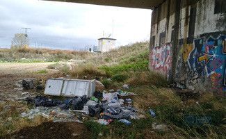 Están, como no podía esperarse de otra manera, pinturrajeados los muros, hasta alturas alcanzables, incluso más allá. Hay la vegetación propia de un lugar abandonado a la atención administrativa, que no a las visitas porque perfectamente cualquier ciudadano se puede acercar, dando un paseo. Allí pueden encontrarse cosas insólitas, desde un frigorífico, sí un frigorífico tirado en el suelo, junto a un montón no pequeño de basuras, como botes de bebida, bolsas de plástico y otras suciedades,slguna de difícil definición que alguien ha optado por abandonar en ese lugar, tan poco transitado, dada la facilidad para acudir en coche desprenderse de los objetos y marcharse, sin ser visto.