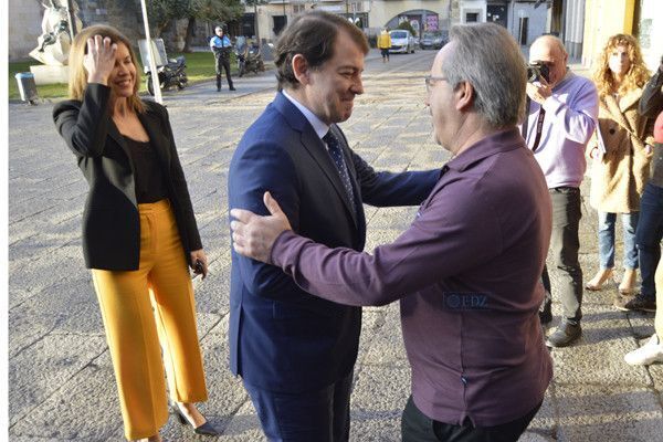 El alcalde de Zamora, Francisco Guarido, se ha reunido esta mañana en el Ayuntamiento con el presidente de la Junta de Castilla y León, Alfonso Fernández Mañueco, con motivo de su primera visita institucional a la ciudad. El alcalde ha recibido al presidente a las puestas del Ayuntamiento y tras los saludos protocolarios, han mantenido una reunión en la Alcaldía, en la que Guarido informó a Fernández Mañueco sobre los distintos proyectos municipales que están actualmente en marcha, y otros asuntos de interés para la ciudad susceptibles de llevarse a cabo en un marco de colaboración entre ambas instituciones y para los que es imprescindible la financiación autonómica. En este encuentro, que duró cerca de una hora estuvieron también presentes la delegada territorial de la Junta, Clara San Damián, y el concejal de Urbanismo, Obras y Medio Ambiente, Romualdo Fernández.