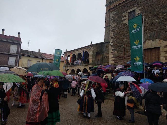Los actos comenzaron con la tradicional recepción en la Plaza Mayor, un poco deslucida por los paraguas, pero con la alegría propia de las mujeres en su día. El alcalde del municipio, Roberto Fuentes Gervás, entregó el bastón de mando a la "águeda mayor", Esperanza Fidalgo Río, en presencia del resto de autoridades, entre las que se encontraba la consejera de Familia e Igualdad de Oportunidades de la Junta de Castilla y León, Isabel Blanco Llamas, y Estela López, directora general de Juventud.