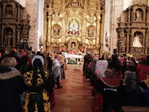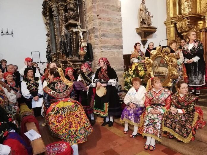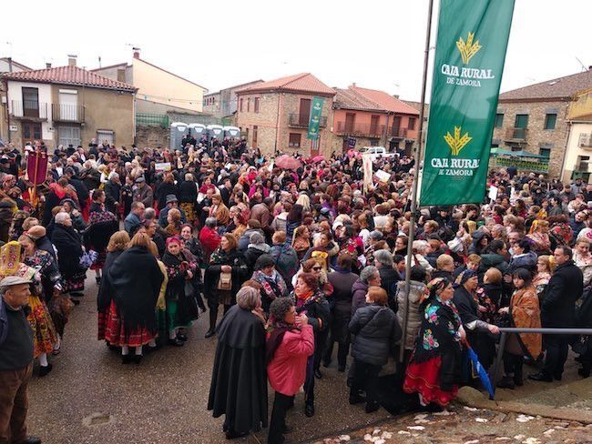Las águedas también participaron en una misa tradicional zamorana y del desfile por las calles de la villa, antes de disfrutar de una comida de hermandad, amenizada con baile y música popular, a cargo de diferentes grupos folclóricos, con la que ha concluido el V Encuentro Provincial.