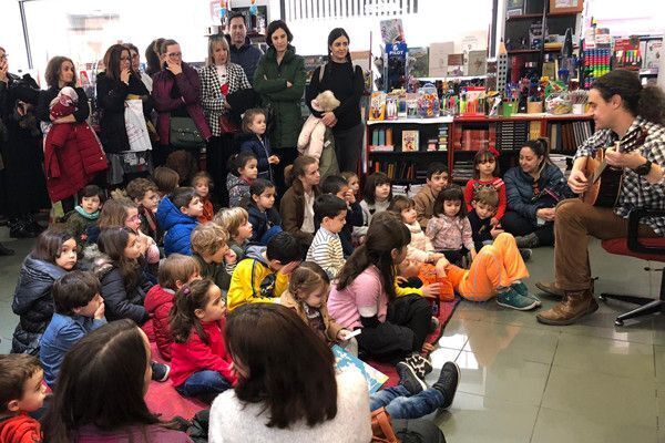 El artista vallisoletano, escritor y músico, deleitó a los niños con su guitarra, durante la presentación de "Una canción para cada emoción"