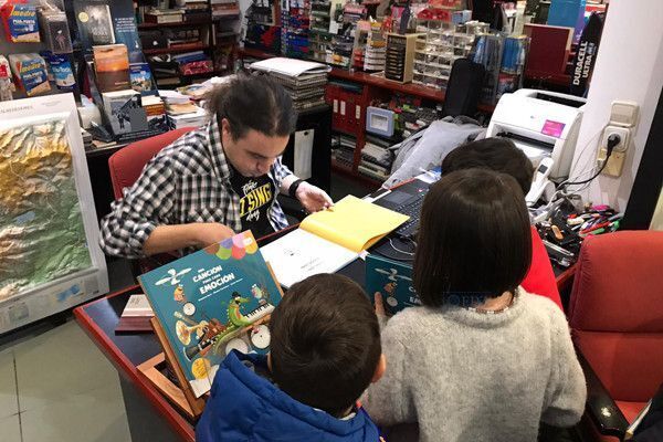 Javier Ferrero, artista vallisoletano, escritor y músico, presentó, acompañado por su guitarra, en la librería Jambrina, en la plaza del Maestro, su libro “Una canción para cada emoción”; magníficamente ilustrado, a decenas de niños y niñas, acompañados de sus mamás, que llenaron el emblemático establecimiento zamorano. Además, el joven artista firmó libros a los niños que adquirieron su magnífico trabajo, todo un deleite para los más pequeños.