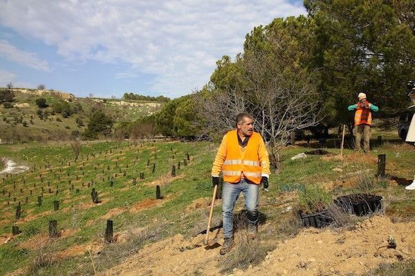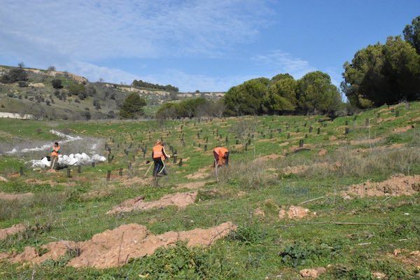 Como recordó el responsable de Sylvestris, los árboles actúan como “sumideros de carbono”, es decir, absorben CO2 (un árbol puede absorber hasta 150 kg de CO2 en 40 años) y, a su vez, generan oxígeno (22 árboles suplen la demanda de O2 de una persona al día). Y combatir la sequía y desertificación y eliminar CO2 de la atmósfera mediante la introducción de vegetación arbórea es luchar contra el cambio climático. La previsión es que con esta siembra, los 450 pinos piñoneros absorberán una 130,5 toneladas de CO2 en los próximos 40 años, mientras que las 225 encinas y 75 almendros absorberán en este mismo periodo 22,5 toneladas de CO2, respectivamente, y, aunque parece un largo plazo, "es algo de lo que podrán disfrutar nuestros hijos o nietos, lo mismo que nosotros nos beneficiamos de lo que hicieron las generaciones anteriores", sentenció Esmoris.