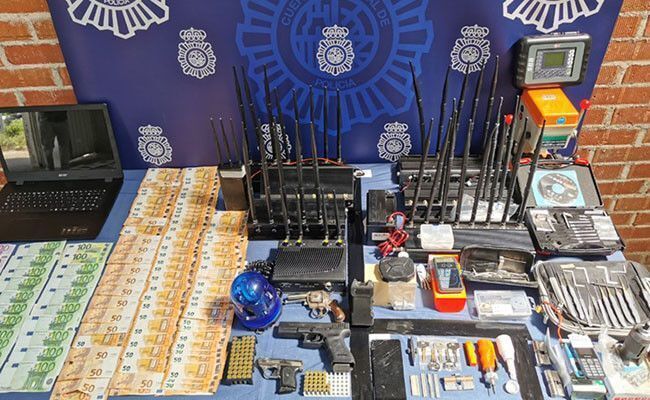 Finalmente, a finales del pasado mes de abril, los agentes detuvieron a siete personas y practicaron ocho registros, todos ellos en la Comunidad de Madrid. Como resultado de éstos últimos, los agentes intervinieron un arsenal de herramientas y diverso material para la comisión de robos como herramientas para la anulación de alarmas y sistemas de seguridad, para la apertura y forzamiento de cerraduras, para la realización de butrones, y para la apertura de cajas fuertes. Asimismo, intervinieron tres armas de fuego -dos de ellas reales y una simulada- y numerosa munición.