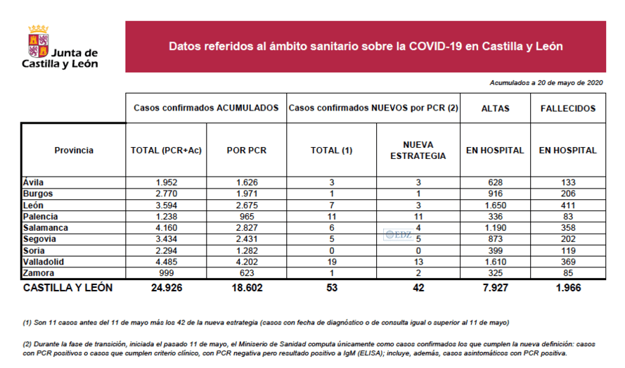 En Zamora, 623 personas han sido confirmadas con PCR, de las que 2 se han confirmado ayer y aún se consideran activas, por presentar síntomas en los últimos 14 días.