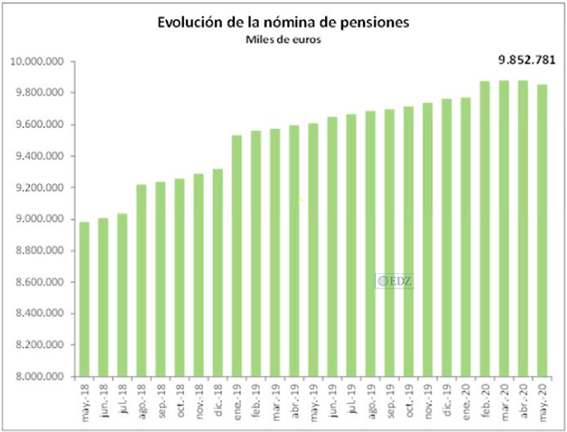 La nómina de pensiones contributivas de mayo se sitúa en 9.852,78 millones de euros