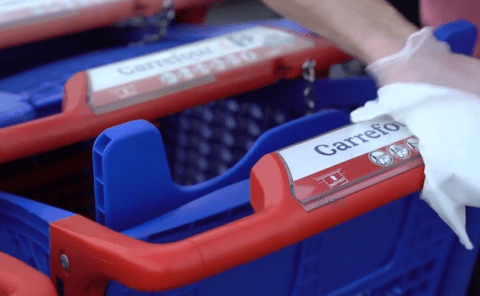 - Se desinfectan cotinuamente tanto carros de compra como cestas así como las papeleras para depositar los guantes, también se desinfecta 4 veces al día el suelo de las zonas comunes