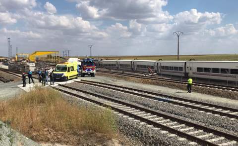 El accidente, que ya está siendo investigado, se producía sobre las 16.10 h. de ayer, cuando la cabeza tractora chocaba con un todoterreno que había caído a la vía, tras precipitarse sobre un puente a la altura de La Hiniesta. El impacto hizo descarrilar a la locomotora, permaneciendo en pie el resto del convoy, gracias a lo que no hubo que lamentar daños de gravedad entre los 158 pasajeros que transportaba.