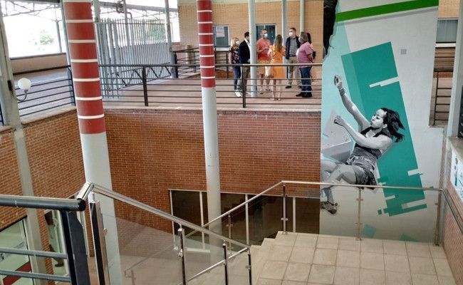 Asimismo y de acuerdo con las normas sobre accesibilidad y eliminación de barreras, en lugar de la antigua plataforma "salvaescaleras" se ha instalado un ascensor para dar servicio no solo a las personas con problemas de movilidad sino también a todas aquellas que lo requieran para acceder y utilizar las instalaciones deportivas. También se ha retranqueado la cabina de control de entrada hacia el fondo del pasillo, pegada a la pared de separación con el local destinado a los vestuarios de trabajadores consiguiendo con ello que el vestíbulo aumente su superficie y se amplíe el acceso al recinto; y se ha sustituido la puerta de acceso por otra acristalada con apertura lateral plegable, consiguiendo una mayor amplitud en el acceso a todas las instalaciones y mejorando con ello las situaciones de aglomeración de personas en ocasiones puntuales se produce en el vestíbulo. Otras de las novedades, y que en este caso no estaba contemplada en el proyecto inicial, es la decoración de una mural con motivos deportivos, realizado por Miguel Cobas, el mismo artista gráfico que realizó el graffiti del interior del pabellón Angel Nieto.