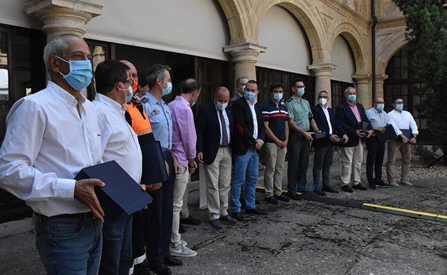 El acto de reconocimiento a las labores prestadas durante el confinamiento ha tenido lugar esta mañana en el patio de la Diputación y en él han estado presentes, además del propio presidente, los vicepresidentes que han hecho entrega de las respectivas placas a cada uno de los homenajeados.