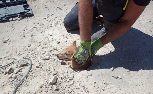 El perro, de nombre Yaki, se había quedado atascado en un tubo, de unos 50 metros de longitud, y no podía avanzar ni retroceder. Los Bomberos de Rionegro del Puente dedicaron más de hora y media en rescatar al animal, primero practicando un agujero a modo de cata, para salvaguardar su integridad, para después realizar una abertura en el hormigón, mediante medios mecánicos y herramientas, que permitió rescatar al perrito ileso y devolverlo a sus propietarios, sumamente agradecidos por la labor de estos héroes zamoranos.