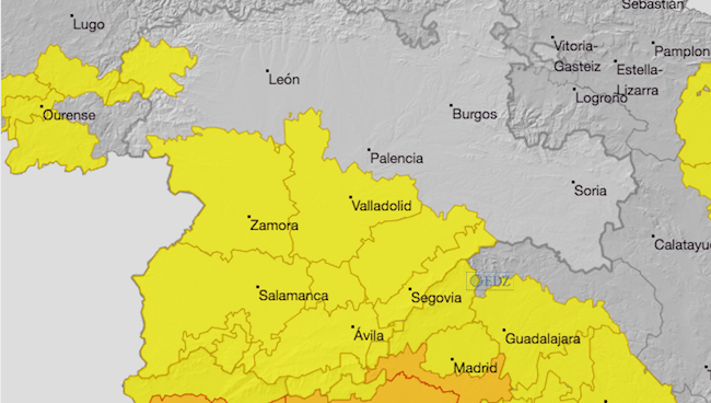 Según las previsiones de la AEMET, cinco provincias de Castilla y León estarán en aviso amarillo por temperaturas extremas, con zonas que podrían llegar hasta los 38º C, en Ávila, Salamanca, Segovia, Valladolid y Zamora.