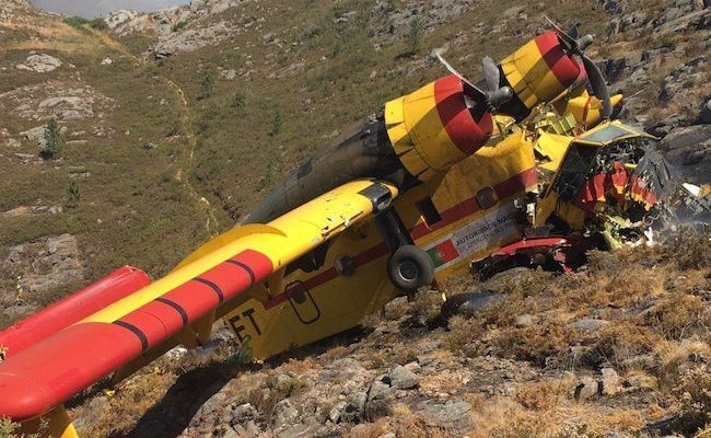 El C215 accidentado hoy, al chocar con una ladera en la frontera de España y Portugal pertenecía al dispositivo contra incendios portugués y participaba en un incendio que afecta a ambos países, en la zona gallega de Lobios.