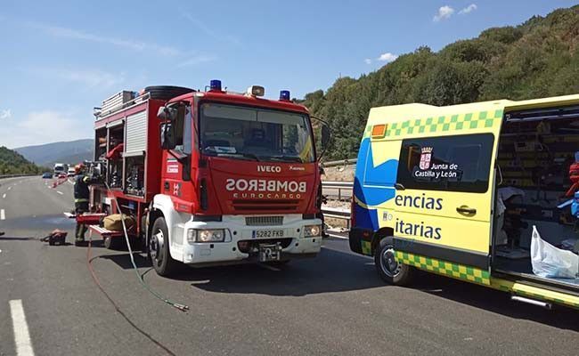 El conductor de uno de los caminones ha sido trasladado en ambulancia, mientras su acompañante excarcelada ha dido trasladada en helicóptero a León.