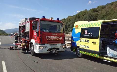 [Img #42538]Efectivos del Parque de Bomberos de Rionegro del Puente del Consorcio Provincial de Extinción y Prevención de Incendios, Salvamentos y Protección Civil de la Diputación de Zamora han participado hoy en los trabajos para liberar a una mujer atrapada debido a un accidente de tráfico por alcance en el km 102 de la A-52, dirección a Benavente, en el que se han visto implicados dos caminones.