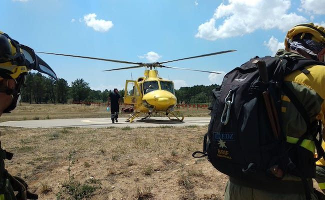 Cerca de 200 personas trabajan en el operativo de lucha contra incendios de la Junta y el Ministerio de Transición Ecológica, con la UME, las BRIF de Tabuyo e Iglesuela, a las que se suma, desde Soria, la de Lubia, además de Guardia Civil, agentes medioambientales, reforzados por efectivos de León y Palencia, tres dotaciones de Bomberos de la Diputación y una UVI móvil de Sacyl, a los que se han sumado 17 medios aéreos, con la luz de la mañana.