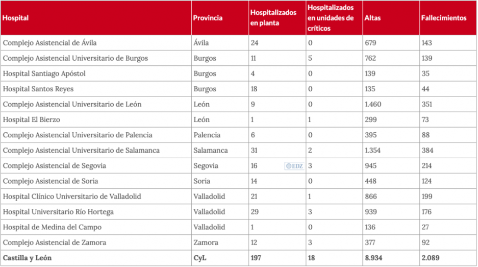 Desafortunadamente, desde la anterior comunicación han fallecido 7 personas, en Salamanca, Soria y Valladolid, de manera que el número actual de personas que han perdido la vida en este ámbito asistencial es de 2.089, a las que se suman los 2.608 fallecidos en las residencias de la comunidad.