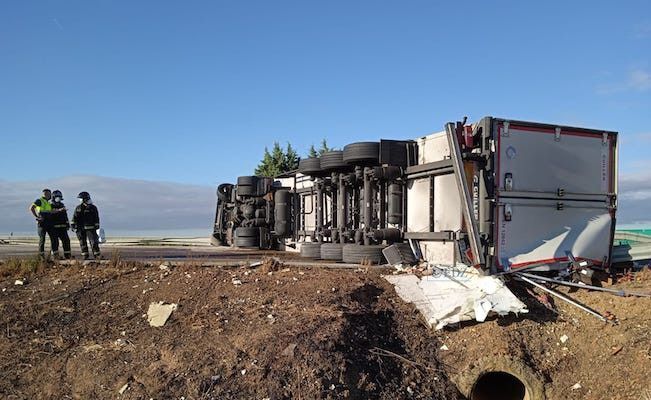Cortada la A6 por el accidente de un camión frigorífico, que ha quedado cruzado en la vía