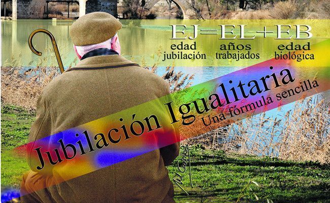 La edad de jubilación ha de equiparar a todos los trabajadores por edad y justicia social. Una posibilidad al respecto, jamás explorada, exenta de discriminación alguna y que integraría a la perfección sus factores determinantes de edad y cotización, sería una sencilla fórmula matemática, esta simple suma: EJ = EB + EL en la que las variables de Edad biológica y Edad laboral, con unos mínimos acordados de, por ejemplo, 60, para la primera, y 30 para la segunda, tendrían que dar una misma Edad de Jubilación para todo el mundo que podría establecerse, perfectamente, en 95 años. Por ejemplo, 95=63+32.