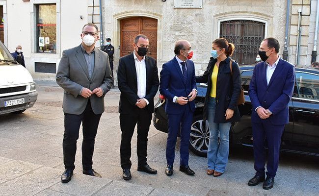 Compartiendo la mesa con el consejero, Javier Ortega, y el presidente de la Diputación, Francisco Requejo, se encontraban también el diputado de Cultura y Turismo, Jesús Prada, el director de la Fundación Delibes, Fernando Zamácola, y uno de los productores del espectáculo, Tomás Martín, así como la directora del teatro Ramos Carrión, Angélica Marcos.