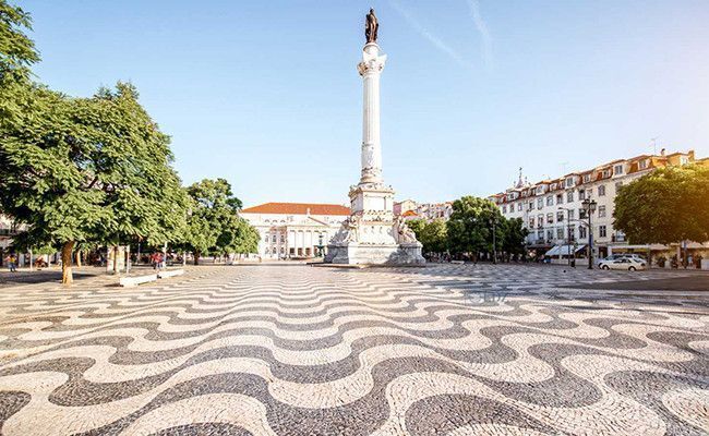 El empedrado portugués consiste en pavimentar con piedras de basalto o calizas, cortadas de forma irregular, a modo de mosaicos, formando patrones decorativos mediante el contraste de colores, generalmente, el blanco y el negro, aunque también en ocasiones, con los colores marrón y rojo; e incluso azul y verde, a veces, en Brasil.