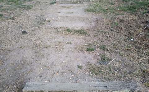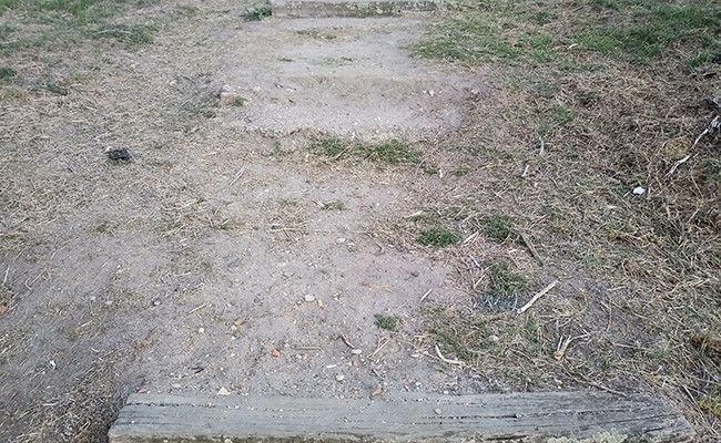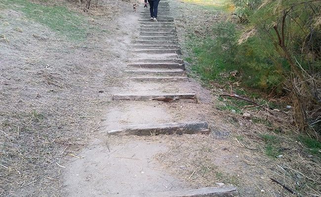 La orografía es caprichosa y a veces precisa de ciertos acomodos para salvar diferencias de nivel. Una de los menos agresivas con el paisaje, hasta llegar a mimetizarse y que no resulta excesivamente costosa, es la escalera. Puede llegar a ser original con mínimo impacto visual y lo más importante, útil para subir o bajar. Así, en una de las pronunciadas rampas tras los campos de futbol de Valorio y la calle Parada del Molino, se optó por colocar traviesas de ferrocarril reutilizadas. Distribuidas estratégicamente en distancia y altura, con un simple relleno de tierra formaron los peldaños de una escalera. Facilitaba la subida, incluso la bajada que bien complicada resultaba con la rampa de arena que la antecedió.