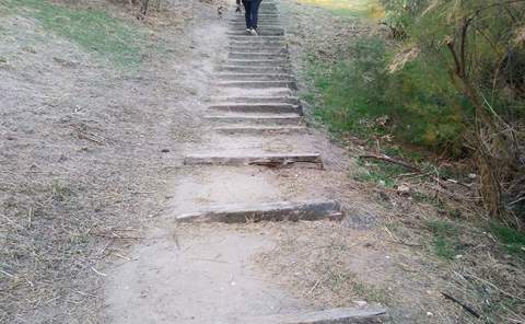 El tiempo pasa, y aunque el mantenimiento para que esta escalinata presente un buen estado no es excesivo, sí que necesita de una atención cada cierto tiempo, atendiendo a la reposición de aquellas traviesas dañadas o a aquellos rellenos afectados por la erosión. No realizándose esa labor de conservación, nos encontramos con tramos impracticables, porque falta directamente alguno de los escalones y las huellas de los otros presentan peligro de que se pise sobre ella. Falsa seguridad para el usuario que confiado las utiliza y puede ser víctima de una mala pisada y, en el peor de los casos de una caída. Necesitando, que se acuerden de ellas para ser reparadas convenientemente.