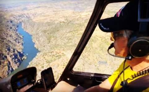 "Ahora estoy en España... ahora estoy en Portugal", Jesús Calleja comenzó sobrevolando el Parque Natural de Arribes del Duero, frontera y unión entre Zamora, Salamanca y Portugal.