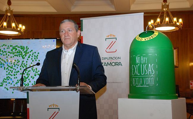 El vicepresidente tercero de la Diputación de Zamora y diputado de Obras Municipales y Medio Ambiente, Javier Faúndez Domínguez, y el gerente regional de Ecovidrio, José Carlos Agustina, presentaron esta mañana la nueva campaña de reciclaje de vidrio en la provincia de Zamora. En la actualidad, la provincia cuenta con un total de 428 localidades donde al menos existe un contenedor de vidrio y 50 localidades donde no había y en las que se han instalado otros tantos nuevos. Tal como informaba el diputado responsable de medio Ambiente "la filosofía de la Diputación es llegar con un contenedor de vidrio al menos a las localidades de 50 e incluso de 40 habitantes, de forma que sean más de 1.000 los contenedores instalados en la provincia".
