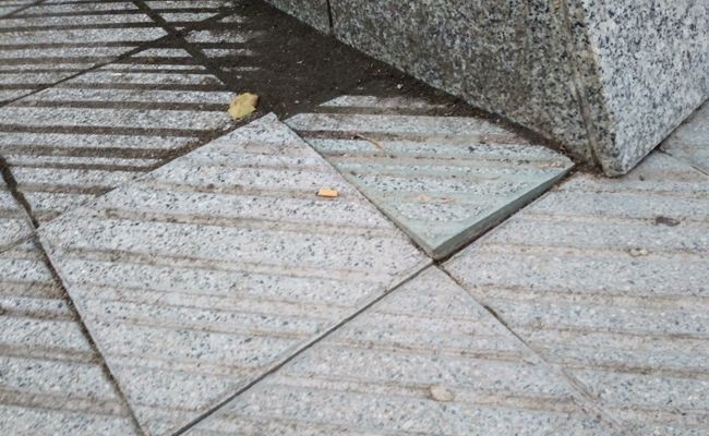 La mínima conservación del parque de La Marina es el principal impedimento. Losas, baldosas, o adoquines, según corresponda a cada espacio, presentan un mismo problema, independientemente de su ubicación y con características comunes. Hay piezas rotas, sueltas o ligeramente levantadas con respecto a las de al lado, hasta llegando a alcanzar algunos centímetros, lo que las convierte en puntos negros para el caminante, que encuentra donde tropezar, salvo que camine mirando al suelo. Los días de lluvia la cosa empeora, formándose charcos y salpicaduras al pisar sobre los trozos rotos.