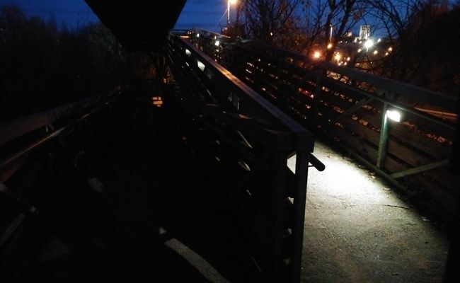 La pasarela que conecta el barrio de San isidro con el resto de la ciudad mantiene, desde hace tiempo, tramos completamente a oscuras, que la convierte en un paso peligroso para los vecinos, tanto por la inseguridad de tener que atravesarla sin luz o usando la linterna del móvil, como por la posibilidad de accidentes sobrevenidos por esta causa.