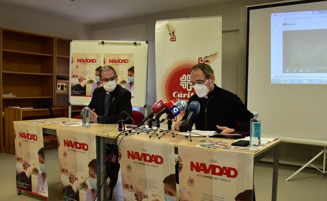 Tras la introducción de Fernando Valera, el delegado diocesano de Cáritas, Antonio Jesús Martín de Lera, antes de informar sobre los datos de este 2020, alabó al nuevo obispo por “su cercanía y preocupación a la realidad de la pobreza, de la exclusión, a la realidad de Cáritas. Ha querido estar presente en esta rueda de prensa como signo de su apoyo”, para, sin pausa, explicar las razones de esta campaña de Navidad: “El lema es más cerca que nunca, cuando este año, desde marzo, nos separan, como para que no estemos cerca del otro. Parece que nos ayuda a decir que no hay que estar pendiente del otro. Sin embargo, Cáritas ha escogido este lema: Más cerca que nunca, a pesar de la distancia física, del alejamiento emocional que se impone con el uso de las mascarillas. Cáritas nos propone vivir una Navidad diferente, un estilo de vida radicalmente distinto, que tiene su origen en el nacimiento de Jesús en Belén y que nos recuerda lo que significa de pobreza y humildad. Y nos invita a que seamos luces que brillan, luces de generosidad, para las personas; que sepamos tener gestos de cuidar y acompañar; que en este tiempo sepamos mirar a los ojos, que dicen mucho, y ser capaces de reconocer y agradecer todo lo bueno que recibimos cada día”.
