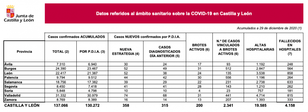 Según estos nuevos datos de hoy, las provincias con más casos nuevos son Valladolid, con 74; Burgos, con 52 y León, con 52. Con los mejores datos para Soria, con 10 y Zamora, con 16. De estos 16 positivos, 14 tienen diagnóstico de ayer.