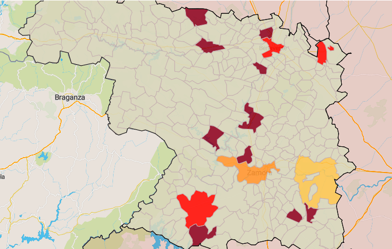 La provincia de Zamora continúa siendo la que mejores datos presenta en los últimos siete días, aunque empeora con respecto ayer, pasando de los 34,20 casos por 100.000 habitantes notificados ayer a los 47,53 conocidos hoy. Sin embargo, mejora en los datos a 14 días, con 102,01 por cada 100.000 habitantes, cuando ayer eran 117,65. Sigue preocupando el indicador de hospitalizaciones en unidades UCI, con 8 personas ingresadas en las unidades de cuidados intensivos del Virgen de la Concha, único indicador que tenemos en riesgo "muy alto".
