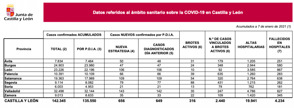 Un día más, se informa del dato positivo de las nuevas altas hospitalarias, con 20 personas recuperadas de la enfermedad, un número bajo, al tratarse de datos del Día de Reyes. Así, Castilla y León acumula 19.941 altas hospitalarias desde marzo. ocho en el Virgen de la Concha desde el martes, con 1.420 personas curadas desde marzo.