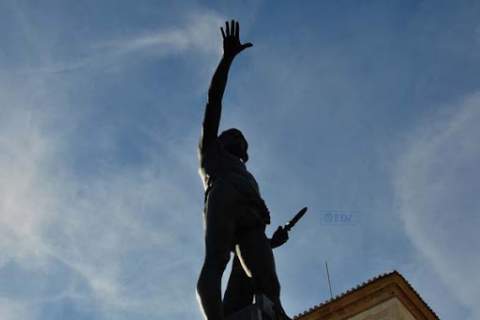 La ciudad leonesa de Zamora, la Ocellun Durii de la romanización, la Semuret de los árabes, la de “El día de Zamora”, la de `la Jornada del Foso´, la que “no se ganó en una hora”, la de `El Campo de la Verdad´, la del `Motín de la Trucha, la de la `Batalla de Toro-Peleagonzalo´, la de `El Tercio Viejo´, la que fue tomada al asalto el 10-1-1809, después de la heroica Batalla de Villagodio, la del …, seguramente tiene ya, desde aquel entonces fechado del 12-1-1904, un aliciente más, un realce mayor, un mejor atractivo,… goza de una espectacular, magnifica y extraordinaria obra escultórica, que como como conjunto monumental (estatua, ariete y cerca, amén de la expresividad de la autoctonía granítica que lo acompaña; que fue Medalla de plata de primera clase en la Exposición Nacional de Bellas Artes de 1884), está cedido por el Estado Español ( de nuestra España Nación), y es obra de un extraordinario escultor, nacido en el pueblo zamorano de Moraleja del Vino (en la zamorana Comarca Natural de La Tierra del Vino, de la Región Reino Leonés), de nombre D. Eduardo Barrón González (discípulo que fue de D. Ramón Álvarez Moretón, alumno en el Instituto precursor del actual Claudio Moyano -.- que, por una casualidad, ha sido `mí Instituto´ una cuarentena de años-.-) y becado por la Diputación Provincial de Zamora en Roma).