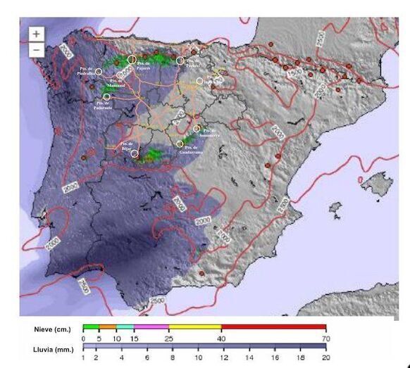 En el Sistema Central, de Ávila o Segovia, desde las 03:00 h. de esta madrugada, se esperan acumulaciones de entre 10 y 5 cm.