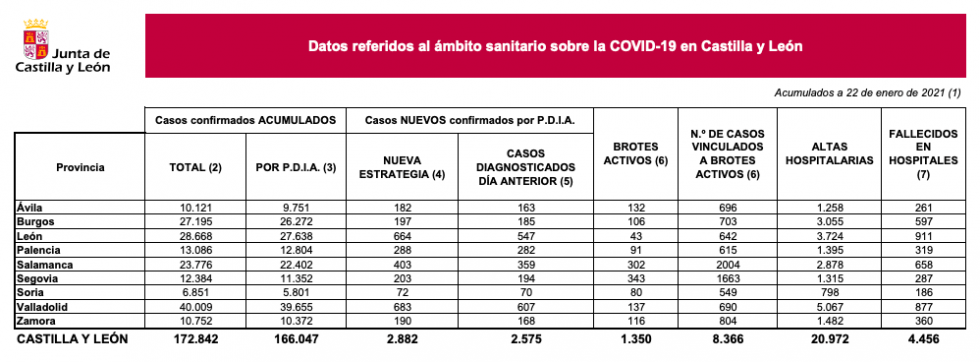 La Consejería de Sanidad de Castilla y León ha informado hoy de los últimos datos de la pandemia en la comunidad, con el número de positivos manteniéndose cerca de los 3.000 positivos diarios. Así, hoy se confirman 2.882 nuevos casos de contagios por SARS-CoV-2 (ayer fueron 2.968), la mayoría diagnosticados ayer: 2.575. Si se compara con los datos del viernes pasado, parece que empieza a contenerse el vertiginoso aumento, al notificarse entonces 2.483.