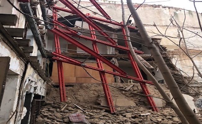 La estructura del andamio interior de la fachada neomudéjar de la Casa Gallego ha quedado muy dañada